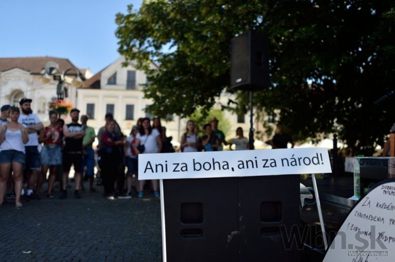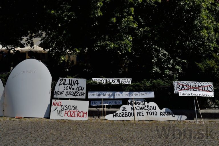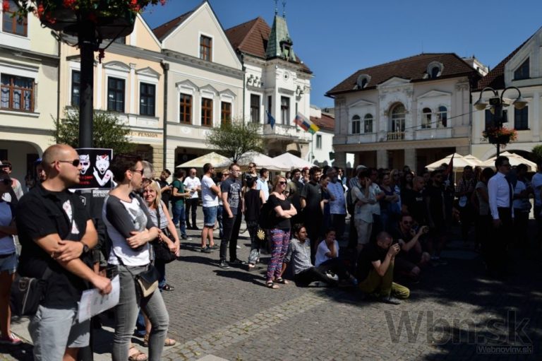 Účastníci pokojného zhromaždenia proti xenofóbii, rasizmu a nenávisti spojené s neformálnou verejnou zbierkou pre organizáciu, ktorá sa venuje práci s utečencami, na Mariánskom námestí. Žilina, 11. júl 2015. Foto: SITA/Robert Tappert