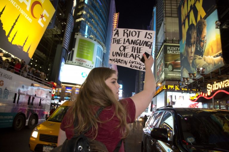 Ulicami New Yorku a Bostonu pochodovali stovky Američanov, kde protestovali proti policajnej brutalite v súvislosti s prípadom mladého muža z Baltimore, ktorý po zadržaní políciou zomrel v dôsledku vážneho zranenia chrbtice. Foto: SITA/ AP