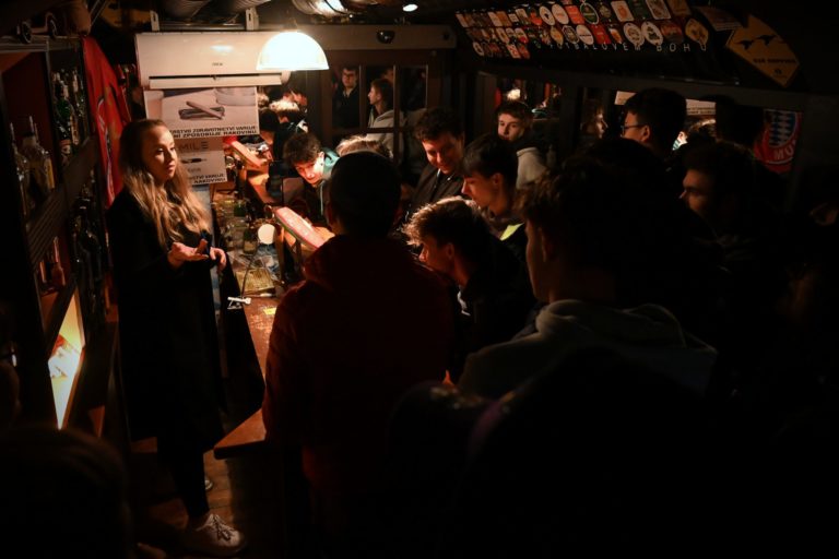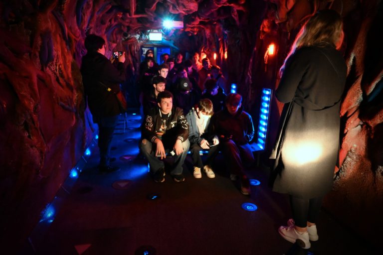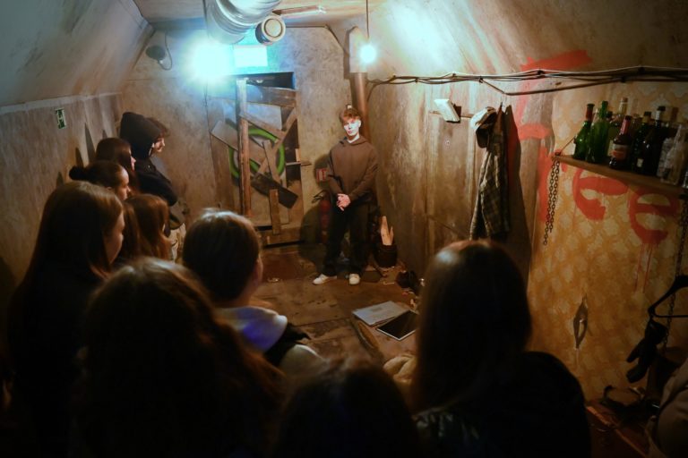 Návštevníci prehliadky protidrogového vlaku Revolution train v Banskej Bystrici v rámci prevenčných aktivít zameraných proti sociálno-patologickým javom. Banská Bystrica, 22. apríl 2024. Foto: SITA/Jakub Julény