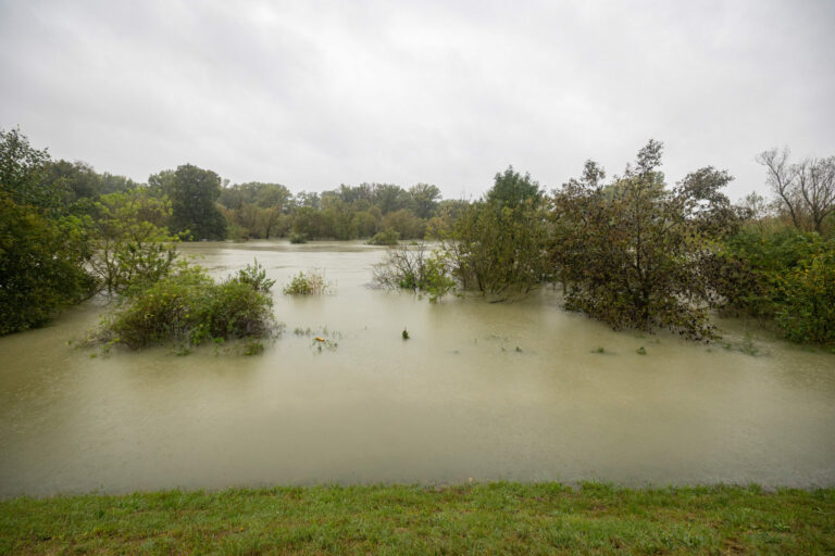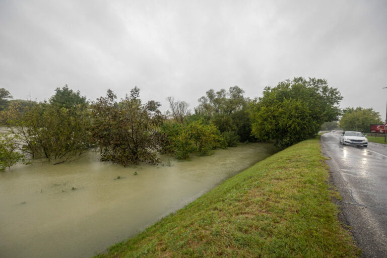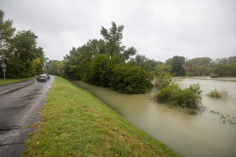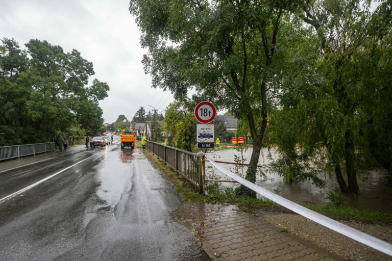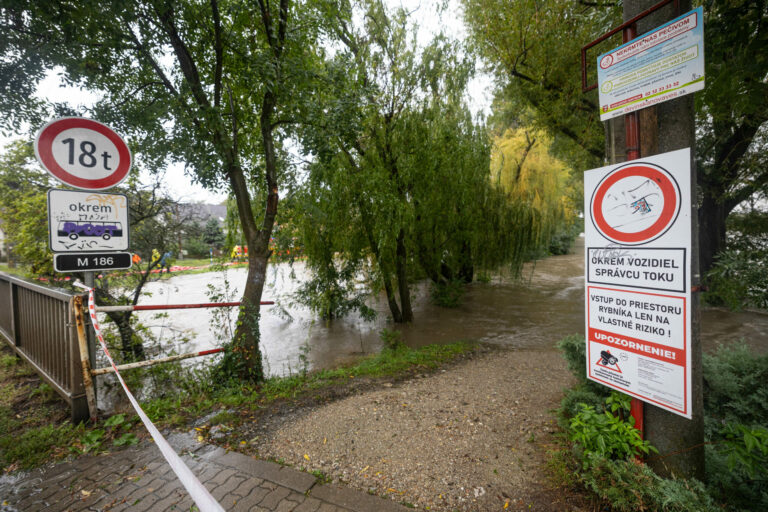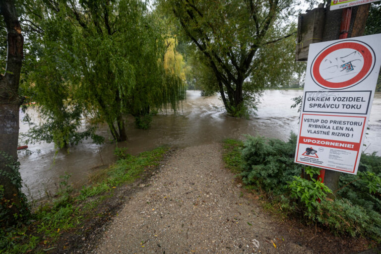 Zatopený cyklochodník medzi Devínskou Novou Vsou a Devínom počas dní kedy Slovenský hydrometeorologický ústav vydal 2. a 3. stupeň meteorologickej a hydrologickej výstrahy pre západné Slovensko. Bratislava, 15. september 2024. Foto: SITA/Jana Birošová.