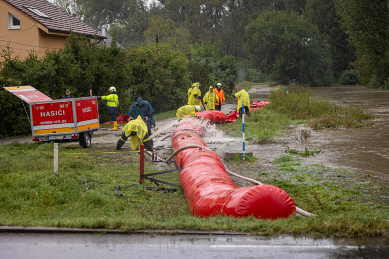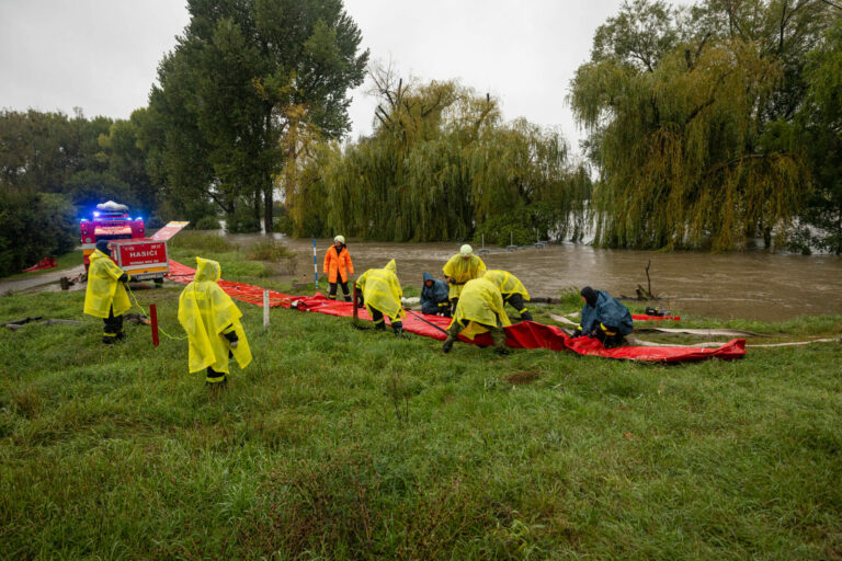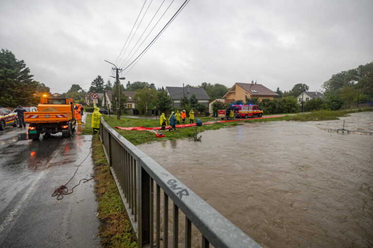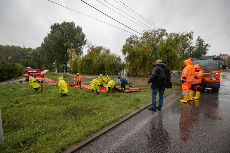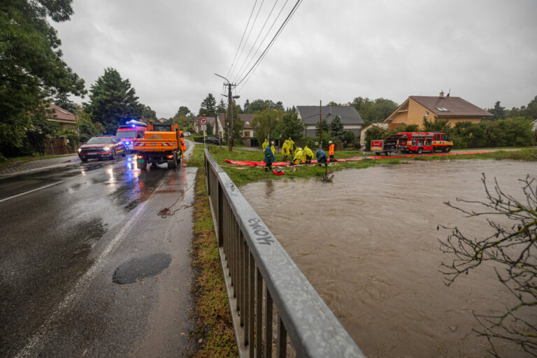 Aktuálna situácia pri Devínskom jazere v bratislavskej mestskej časti Devínska Nová Ves počas dní kedy Slovenský hydrometeorologický ústav vydal 2. a 3. stupeň meteorologickej a hydrologickej výstrahy pre západné Slovensko. Bratislava, 15. september 2024. Foto: SITA/Jana Birošová.
