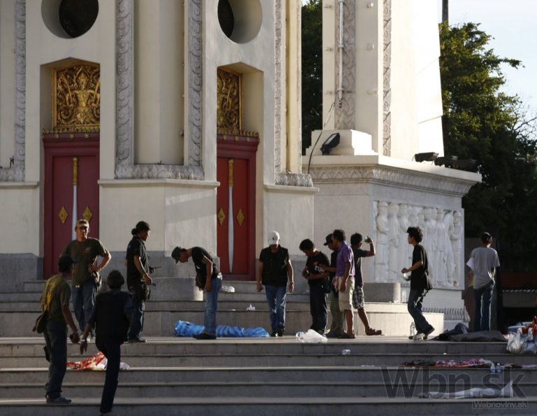 Explózia a celonočné útoky opozičných demonštrantov pred pamätníkom Demokracie v Bangkoku si vyžiadali životy najmenej dvoch ľudí. Foto: SITA/AP