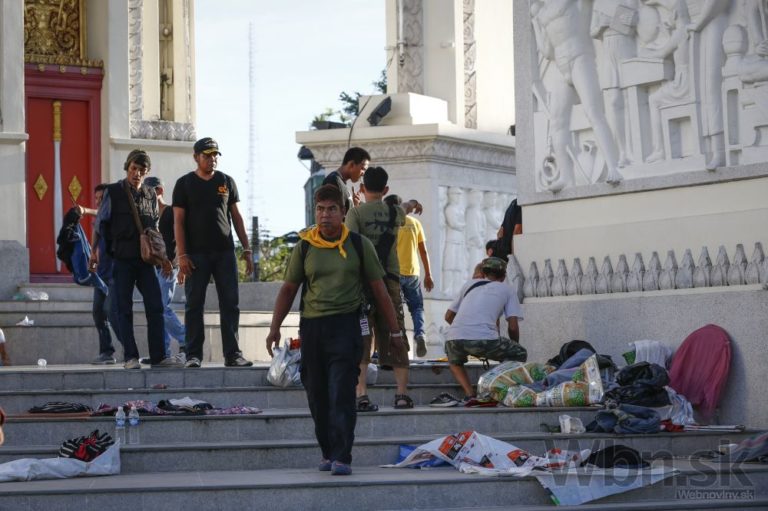 Thajskí protivládni demonštranti sa zhromažďujú pred pamätníkom Demokracie. Chcú dosiahnuť, aby úradujúci premiér Nivatthamronga Boonsongphaisana odstúpil z funkcie. Bangkok, Thajsko Foto: SITA/AP