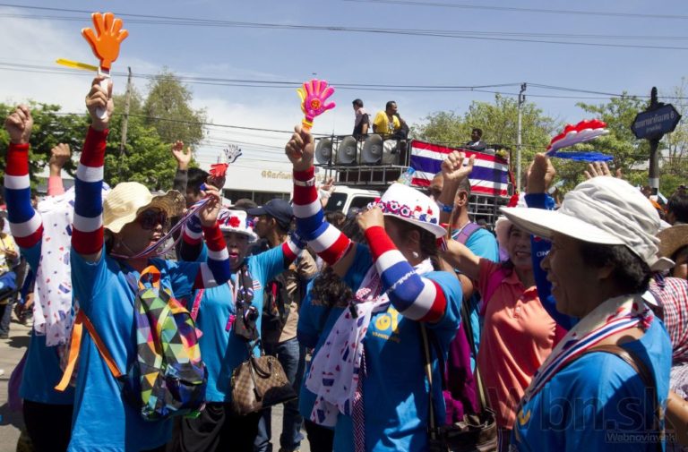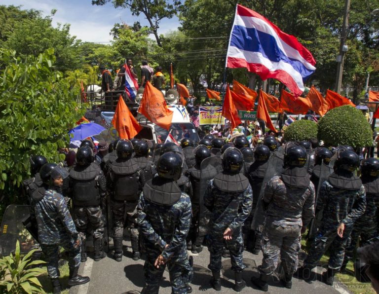 Thajskí protivládni demonštranti sa zhromažďujú pred leteckou základňou v Bangkoku. Svojim vstupom do budovy dohnali k úteku úradujúceho premiéra Nivatthamronga Boonsongphaisana. Narušili tak rokovanie o predčasných voľbách v krajine.