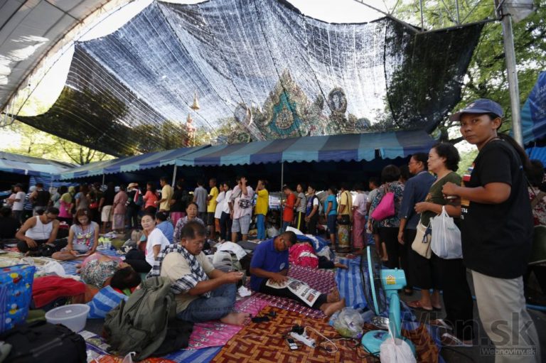 Protivládni demonštranti počúvajú reč ich vodcu. Chcú, aby úradujúci premiér Nivatthamronga BoonsongphaisanaBangkok odstúpil z funkcie. Thajsko Foto: SITA/AP