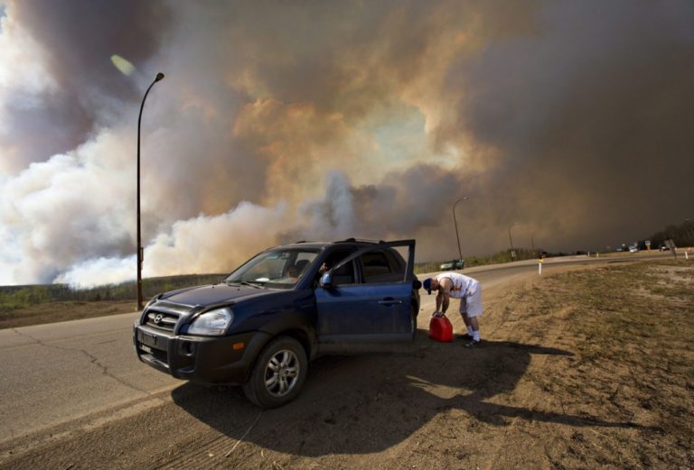 Mohutný lesný požiar si vynútil evakuáciu 88 000 obyvateľov. Plamene zničili alebo poškodili okolo 1600 domov a iných budov a rozšírili sa na plochu s rozlohou vyše 10 000 hektárov. Foto: The Canadian Press via AP