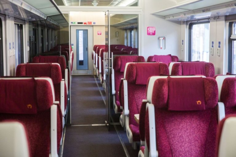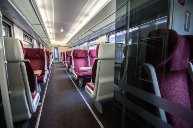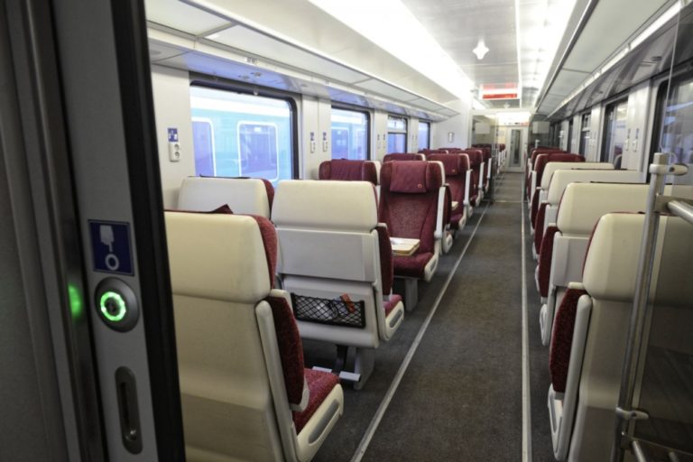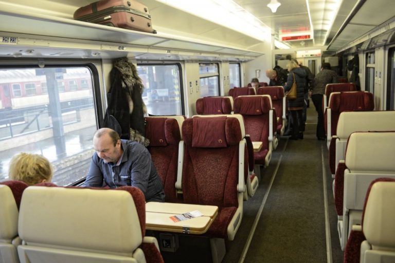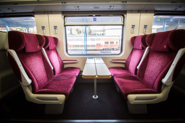 Pohľad do vagóna 1.triedy štátneho komerčného IC vlaku. Štátny železničný dopravca obnovil od 11. decembra prevádzku štátnych komerčných IC vlakov. Bratislava, 11. december 2016. Foto: SITA/Marko Erd