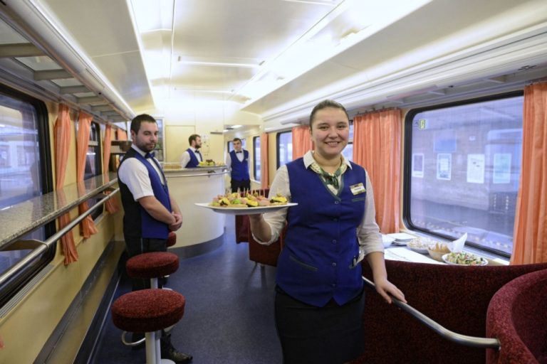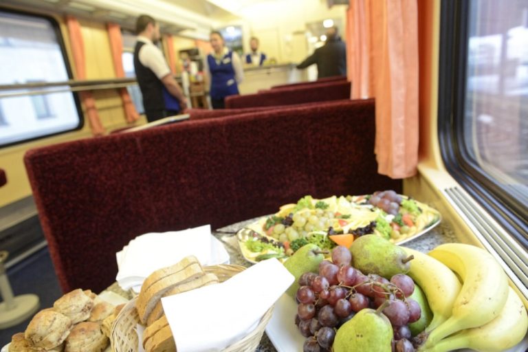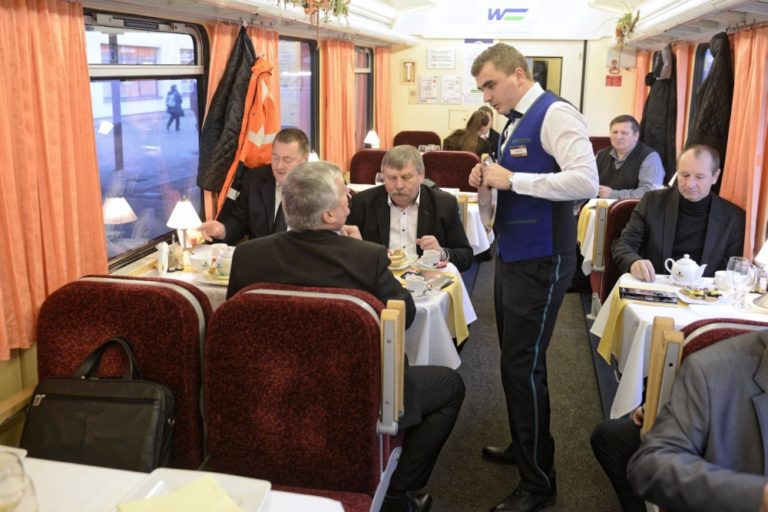 Pohľad do jedálenského vagóna štátneho komerčného IC vlaku počas prvého odjazdu zo stanice v Košiciach do Bratislavy. Košice, 11. december 2016. Foto: SITA/Ivan Fleischer