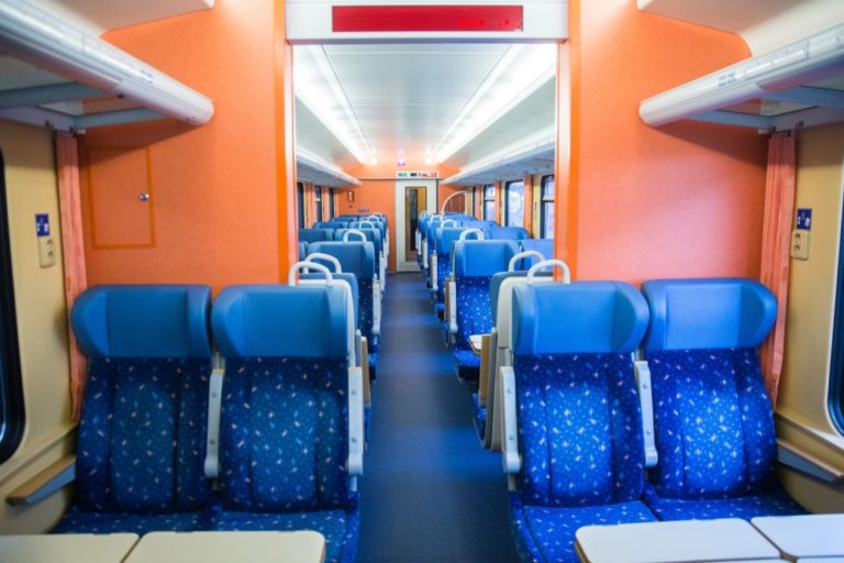 Pohľad do vagónu 2. triedy štátneho komerčného IC vlaku. Štátny železničný dopravca obnovil od 11. decembra prevádzku štátnych komerčných IC vlakov. Bratislava, 11. december 2016. Foto: SITA/Marko Erd