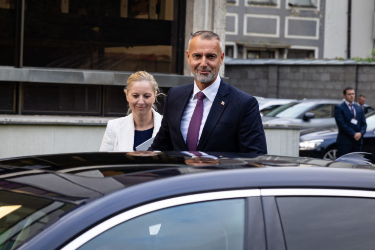 Novovymenovaný minister zahraničných vecí a európskych záležitostí SR Juraj Blanár počas príchodu na rokovanie 1. schôdze vlády SR. Bratislava, 25. október 2023. Foto: SITA/Jana Birošová