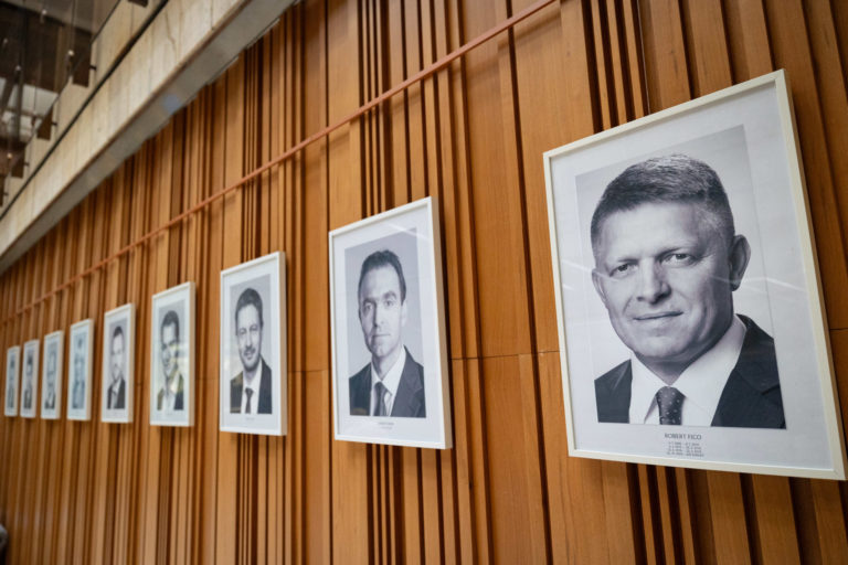 Fotografie predsedov vlád SR na Úrade vlády SR počas rokovania 1. schôdze vlády SR. Bratislava, 25. október 2023. Foto: SITA/Jana Birošová