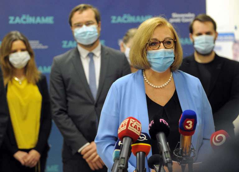 Členka konzília odborníkov Zuzana Krištúfková (v popredí) počas tlačovej konferencie s názvom Vianočné prekvapenie, pred začatím očkovania na Slovensku vakcínou na prevenciu ochorenia COVID-19 vo Fakultnej nemocnici (FN) v Nitre. Nitra, 26. december 2020. Foto: SITA/Martin Havran