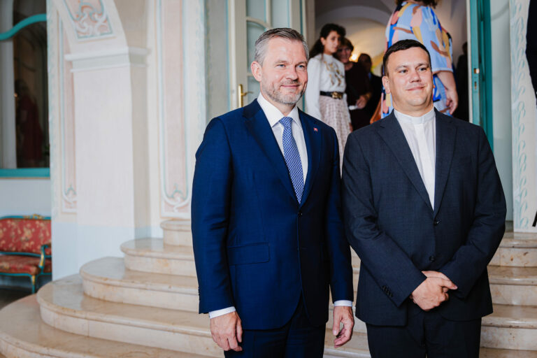 Prezident SR Peter Pellegrini (vpravo) počas slávnostného obeda pri príležitosti prvého výročia inaugurácie v Prezidentskom paláci. Bratislava, 16. jún 2025. Foto: SITA/Kancelária prezidenta