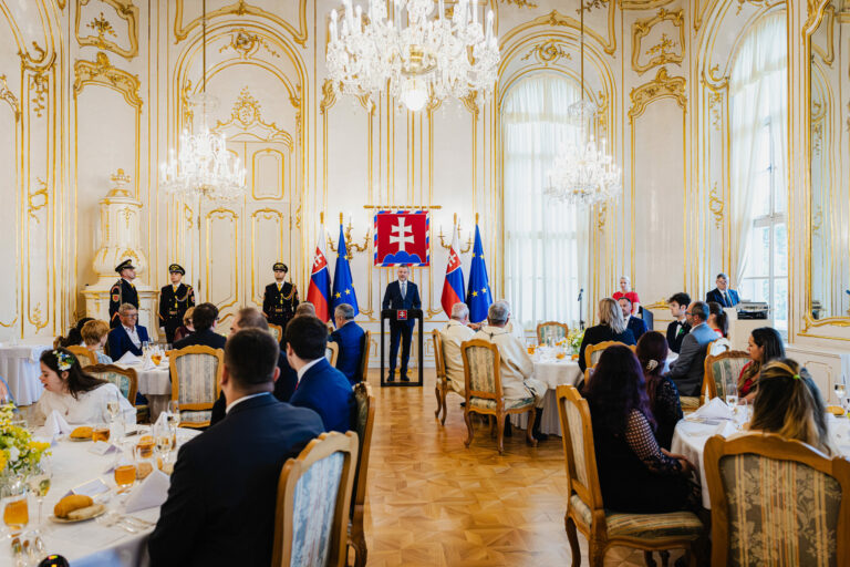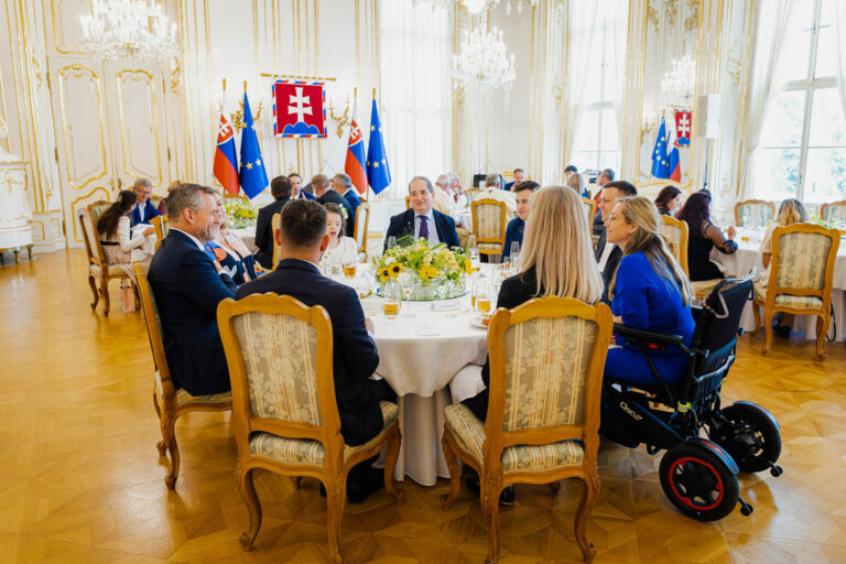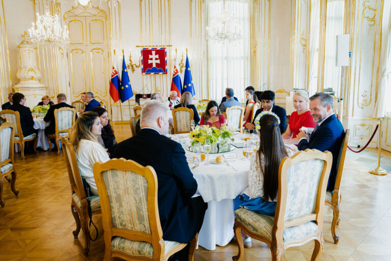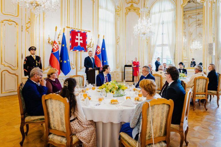 Atmosféra počas slávnostného obeda prezidenta SR pri príležitosti prvého výročia inaugurácie v Prezidentskom paláci. Bratislava, 16. jún 2025. Foto: SITA/Kancelária prezidenta