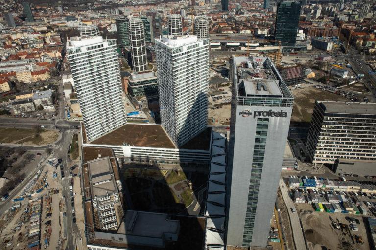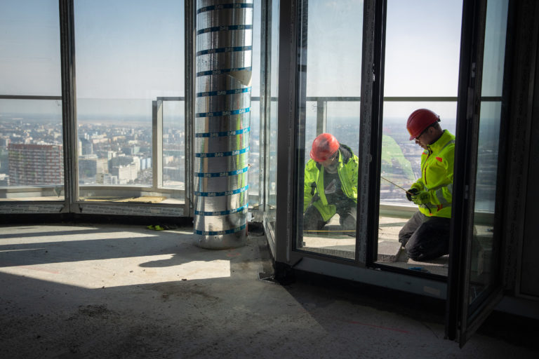 Priestory prvého slovenského mrakodrapu Eurovea Tower v Bratislave počas novinárskeho dňa, na ktorom informovali o výstavbe a sprístupnení jednotlivých funkcií rozšírenej Eurovea . Bratislava, 10. marec 2023. Foto: SITA/Diana Černáková SITA/Diana Černáková