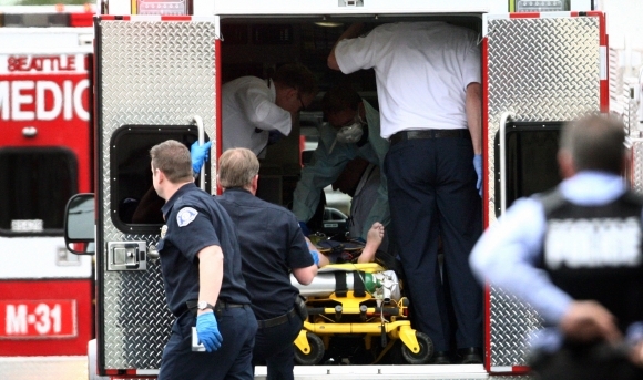 Psychicky chorý muž zastrelil v kaviarni v Seattli štyroch ľudí. Na parkovisku zabil piatu osobu a ukradol jej auto. Podľa policajných detektívov s ním mali v kaviarni pred niekoľkými dňami konflikt. Šialený strelec si pred príchodom polície strelil do hlavy. Zraneniam v nemocnici podľahol. Foto: SITA, AP
