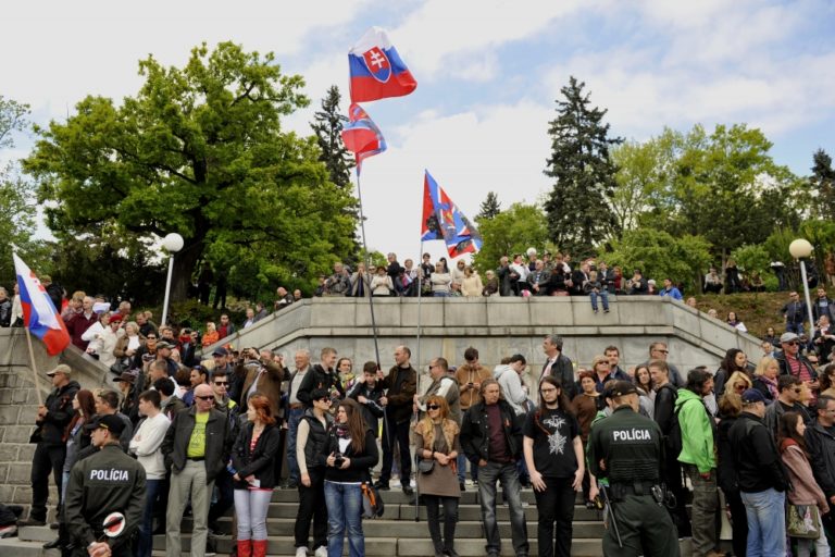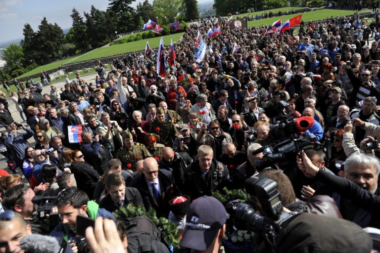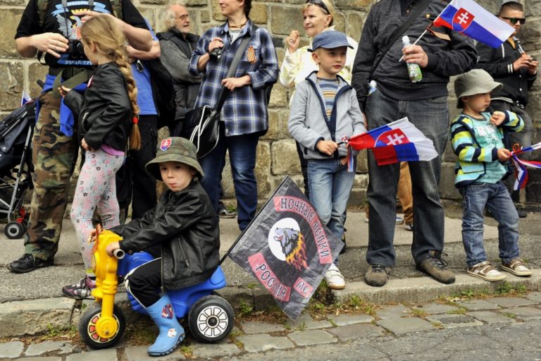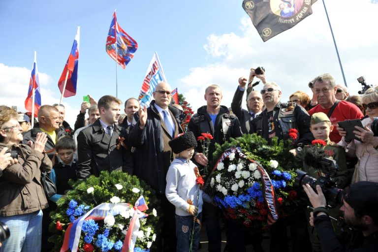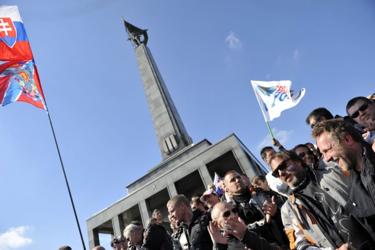 Atmosféra na Slavíne počas čakania na ruských motorkárov z klubu Noční vlci. Bratislava, 2. máj 2015. Foto: SITA/Ján Slovák