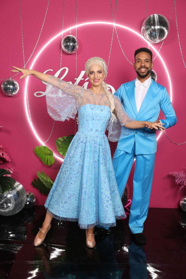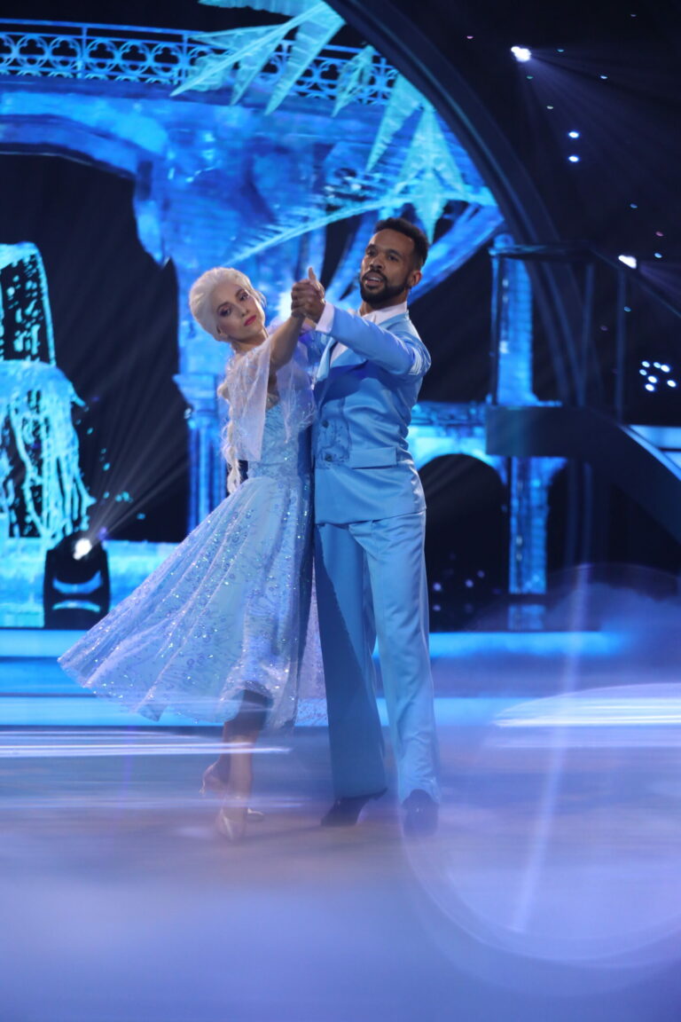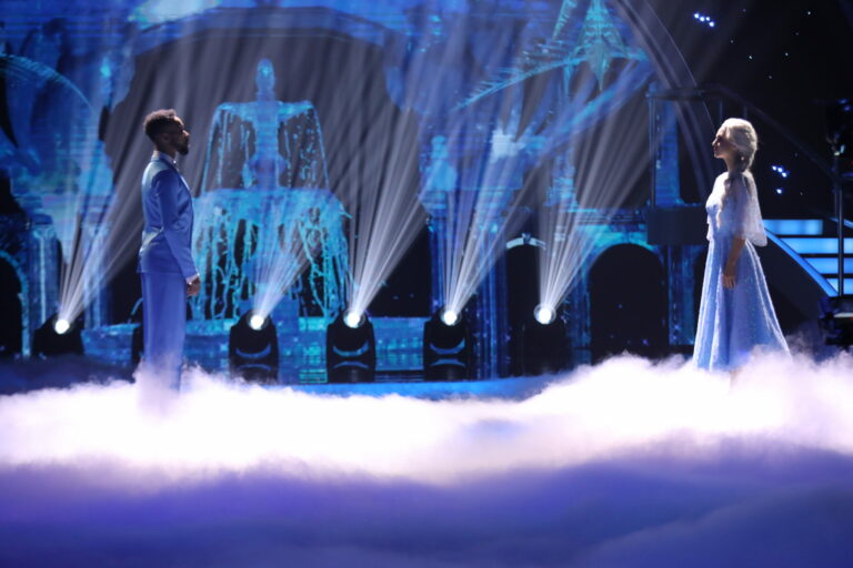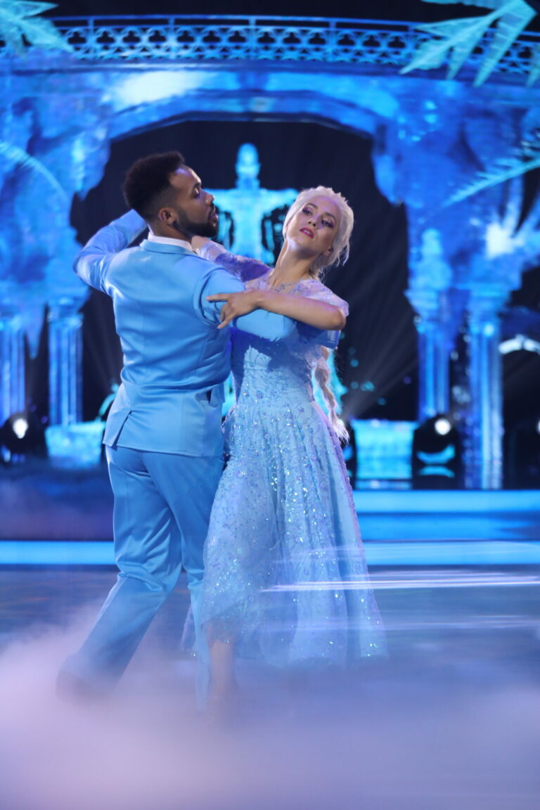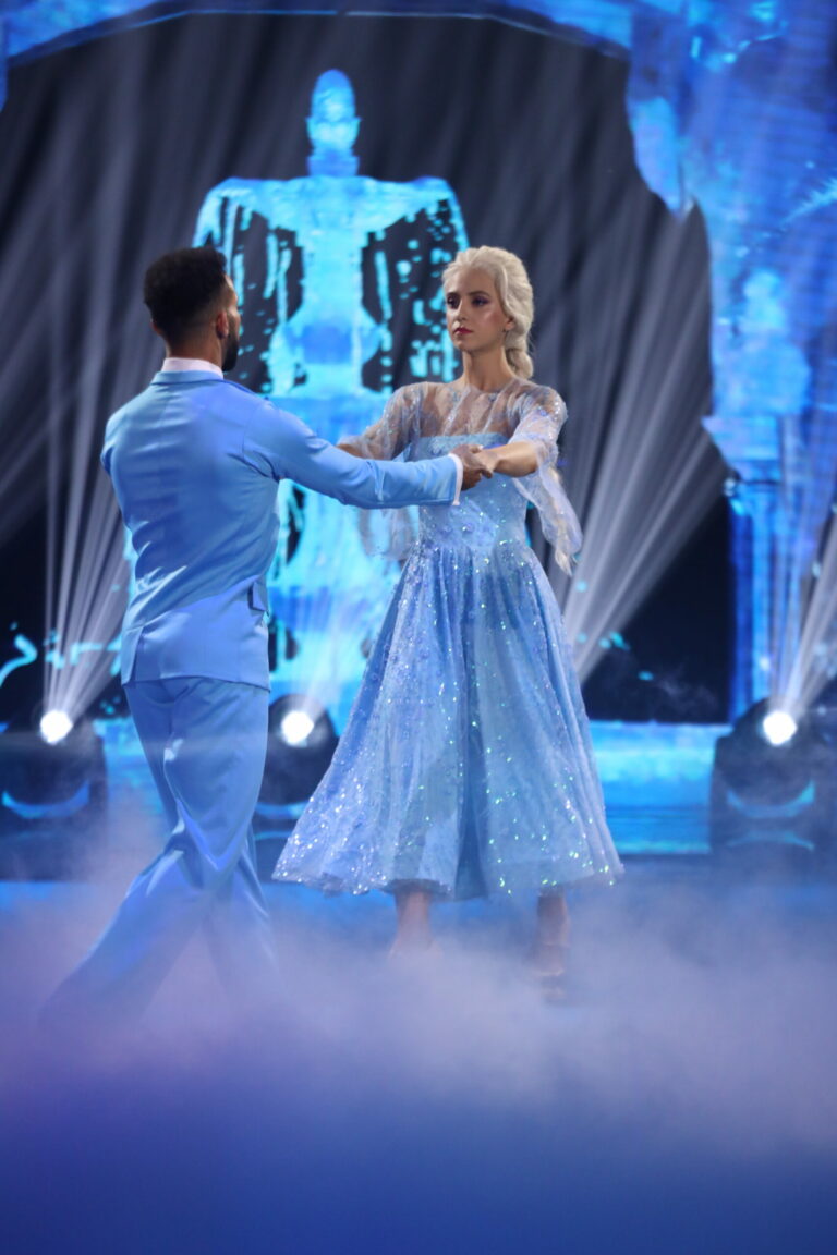 Ľadové kráľovstvo a slowfox v podaní Ráchel Šoltésovej a Titusa Ablorha v treťom kola Let’s Dance 2025. Bratislava, 16. marec 2025. Foto: TV Markíza.