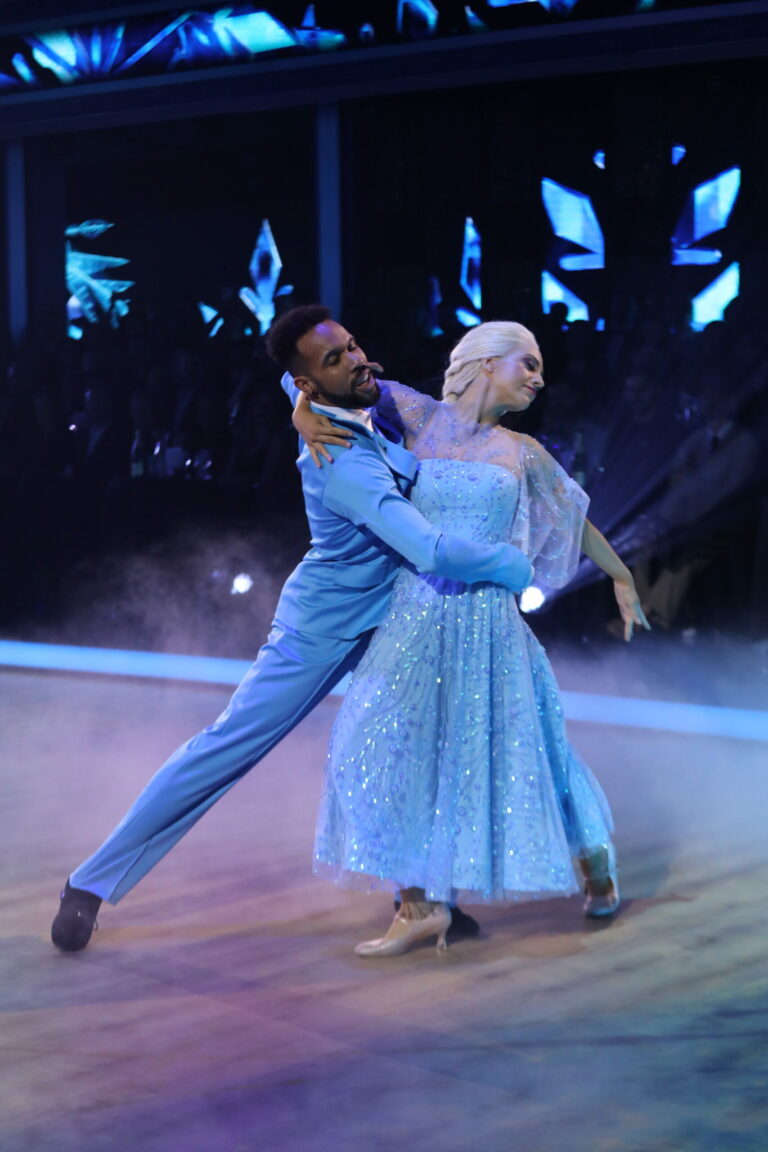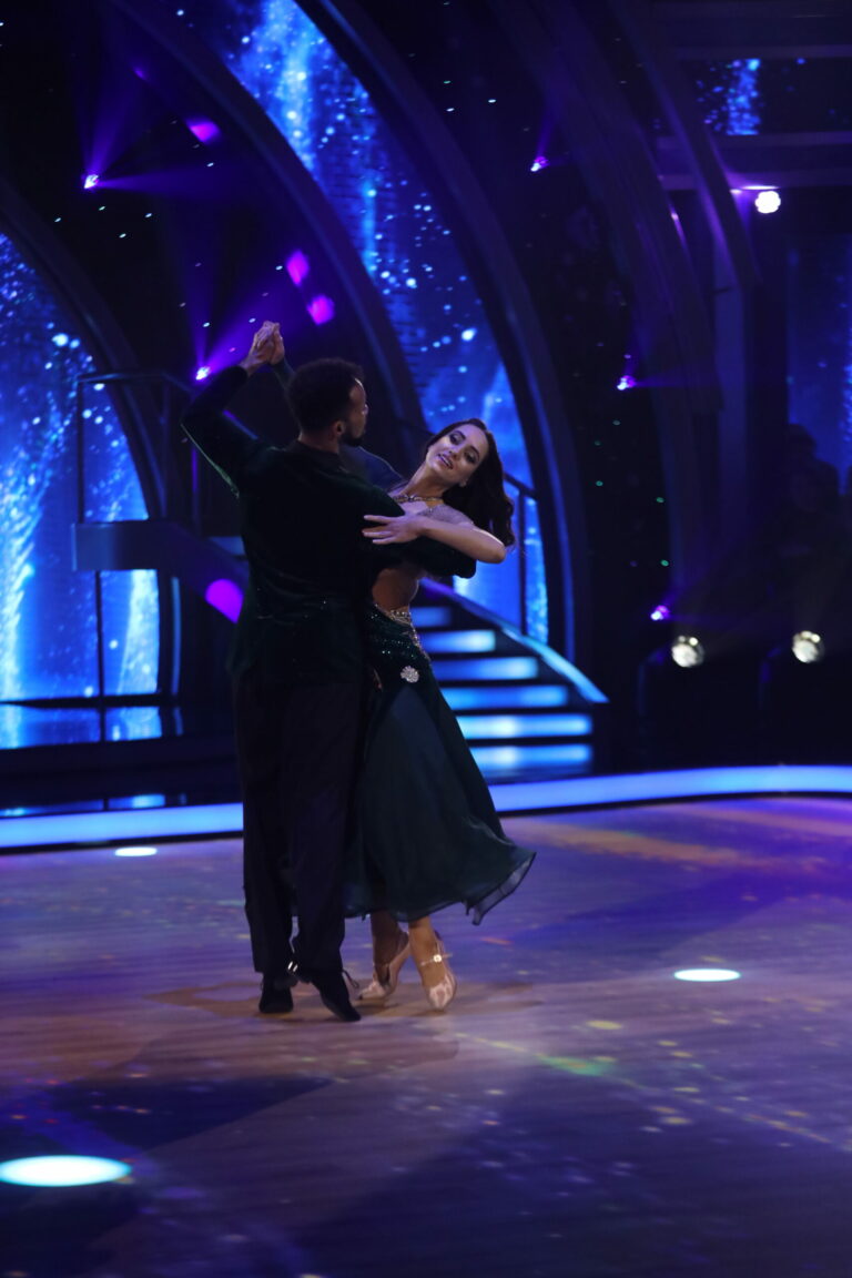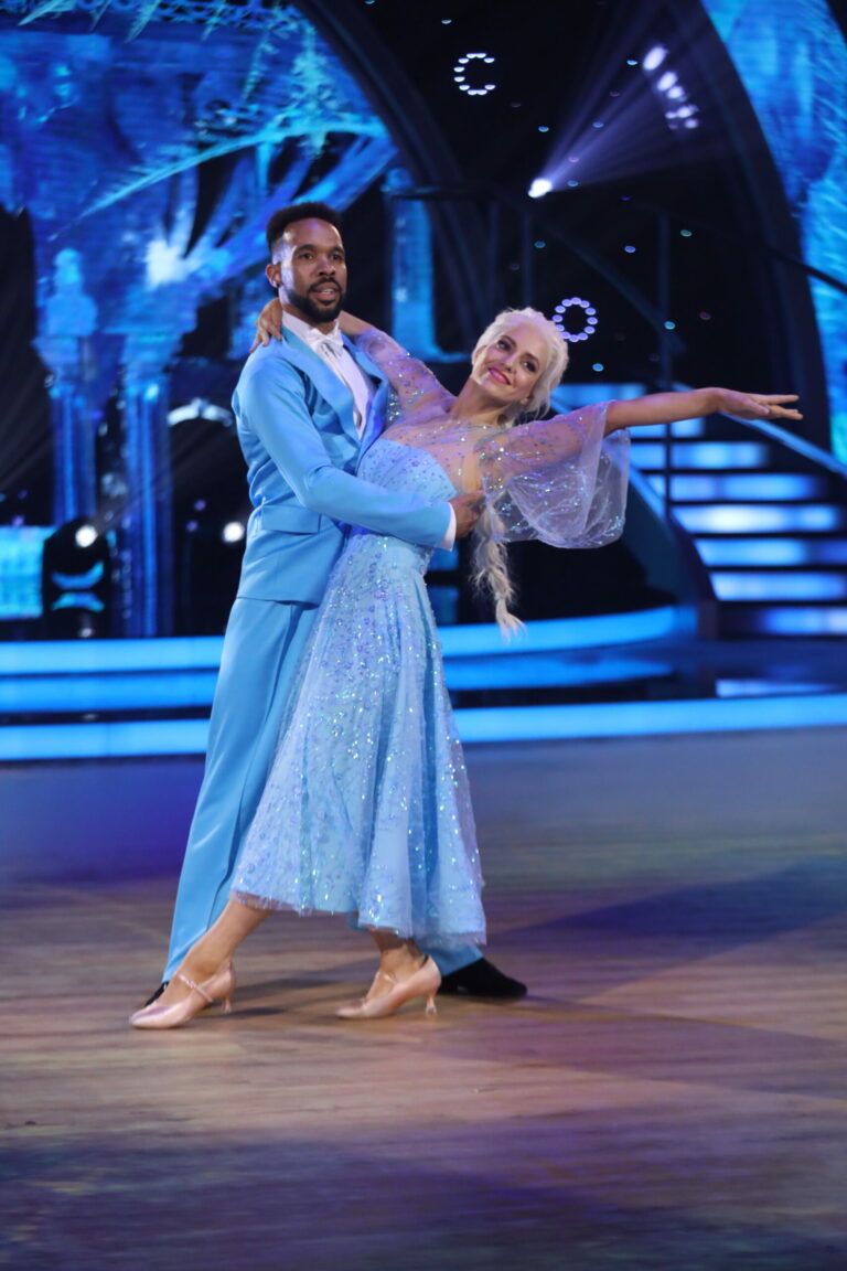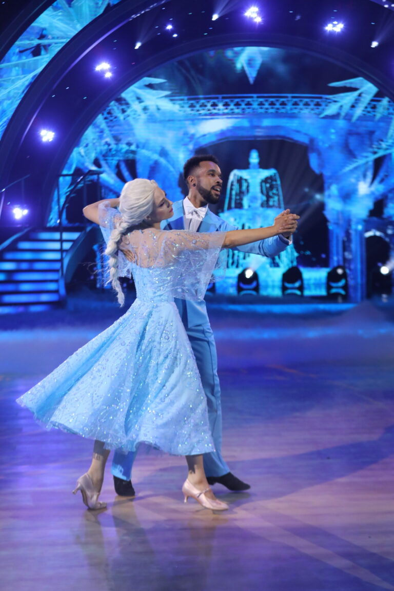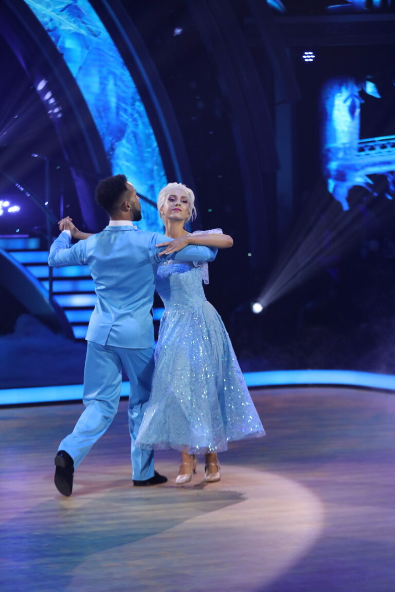 Ľadové kráľovstvo a slowfox v podaní Ráchel Šoltésovej a Titusa Ablorha v treťom kola Let’s Dance 2025. Bratislava, 16. marec 2025. Foto: TV Markíza.