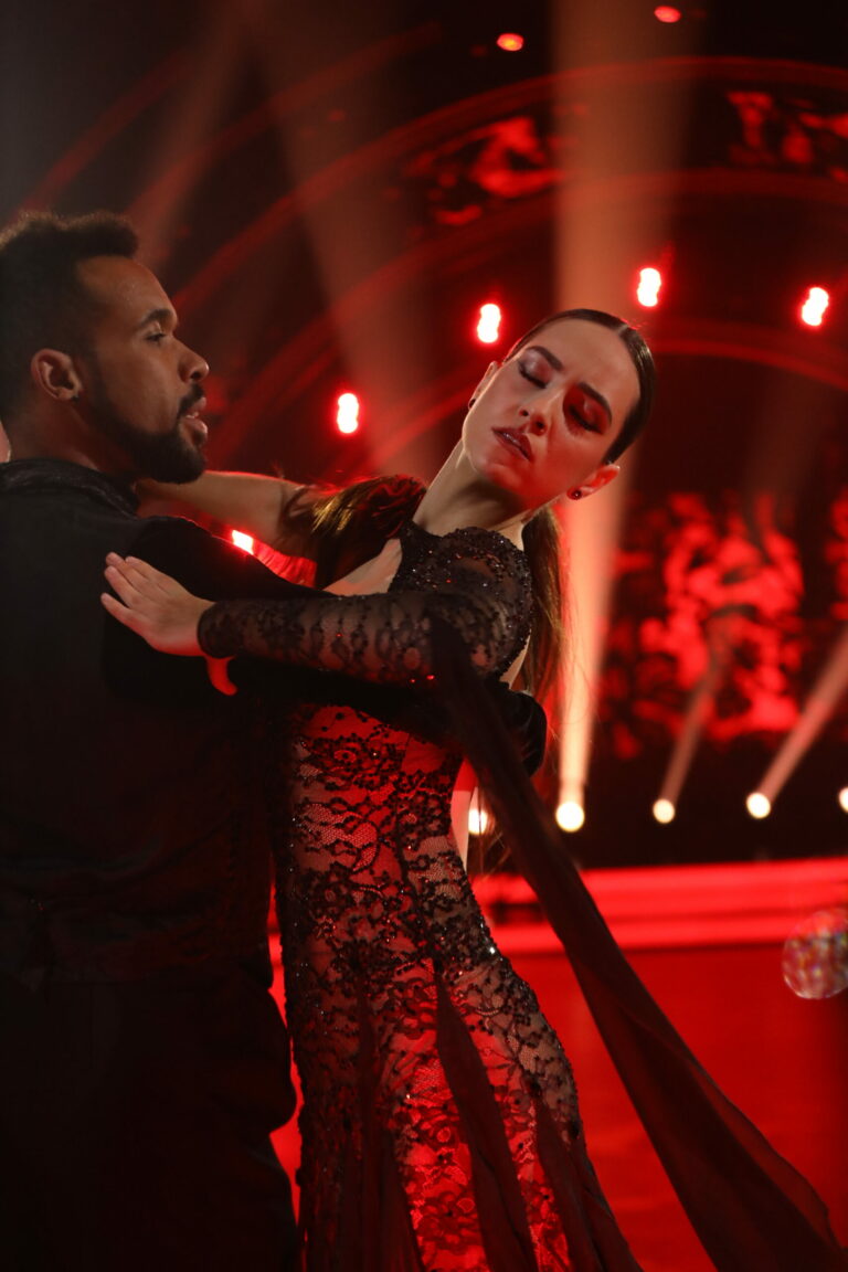 Ráchel Šoltésová a Jaroslav Ihring počas 7. kola Let’s Dance 2025. Bratislava, 13. apríl 2025. Foto: TV Markíza.