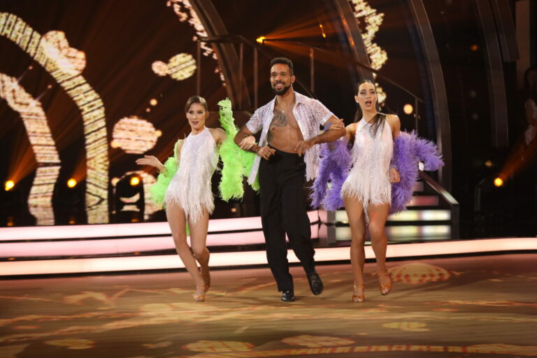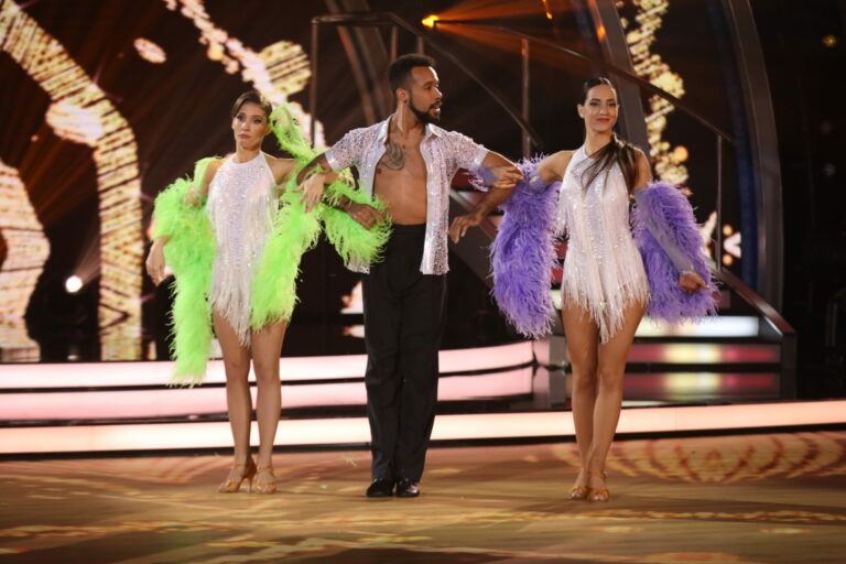 Sambu v semifinále Let's dance 2025 s Ráchel Šoltésovou tancovali jej tanečný partner Titus Ablorh a moderátorka tejto jubilejnej 10. série Jana Kovalčíková. Bratislava (Incheba), 27. apríl 2025. Foto: TV Markíza.