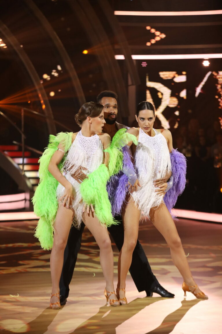 Sambu v semifinále Let's dance 2025 s Ráchel Šoltésovou tancovali jej tanečný partner Titus Ablorh a moderátorka tejto jubilejnej 10. série Jana Kovalčíková. Bratislava (Incheba), 27. apríl 2025. Foto: TV Markiza.
