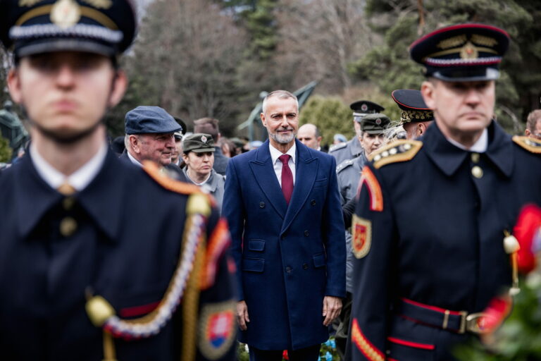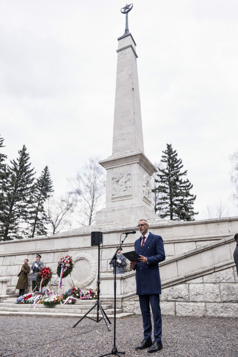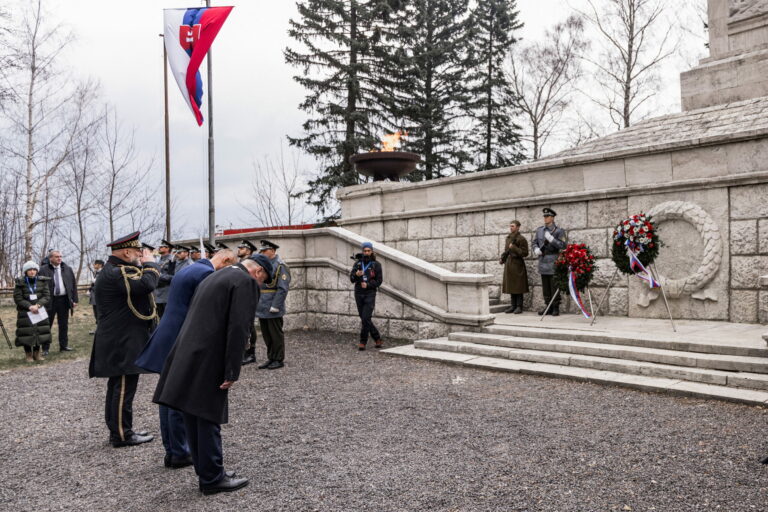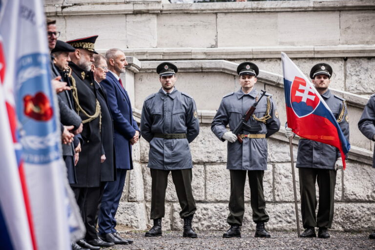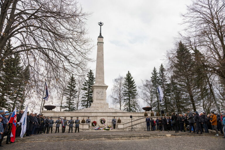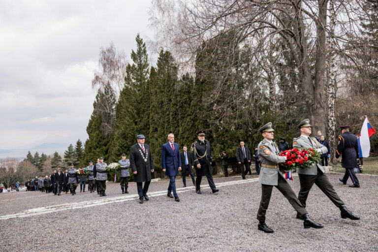 Atmosféra počas pietnej spomienky na Vojenskom pamätníku a cintoríne Háj Nicovô za účasti predsedu Národnej rady SR pri príležitosti 80. výročia oslobodenia mesta Liptovský Mikuláš. Liptovský Mikuláš, 5. apríl 2025. Foto: SITA/Kancelária Národnej rady SR