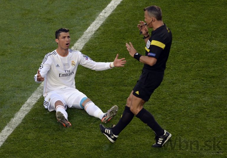 Hviezda Realu Madrid Cristiano Ronaldo a hlavný rozhodca Björn Kuipers počas finálového zápasu Ligy majstrov. Foto: SITA/AP