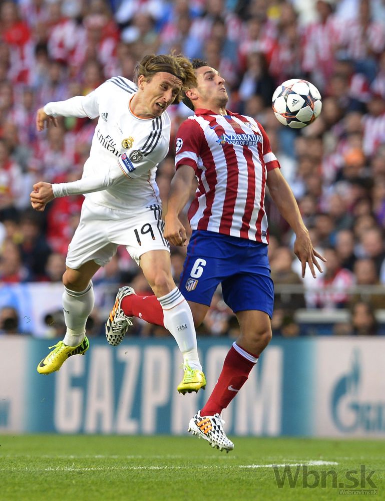 Koke z Atlética Madrid v súboji s Lukom Modričom z Realu Madrid počas finálového zápasu Ligy majstrov. Foto: SITA/AP