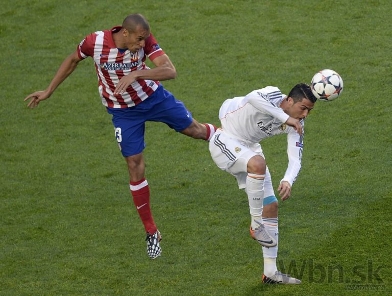 Miranda z Atlética v súboji s hviezdou Realu Madrid Cristianom Ronaldom počas finálového zápasu Ligy majstrov. Foto: SITA/AP