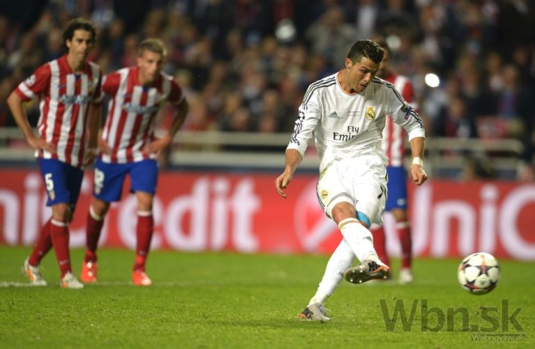 Hviezda Realu Madrid Cristiano Ronaldo premieňa pokutový kop počas predĺženia vo finálovom zápase Ligy majstrov. Foto: SITA/AP