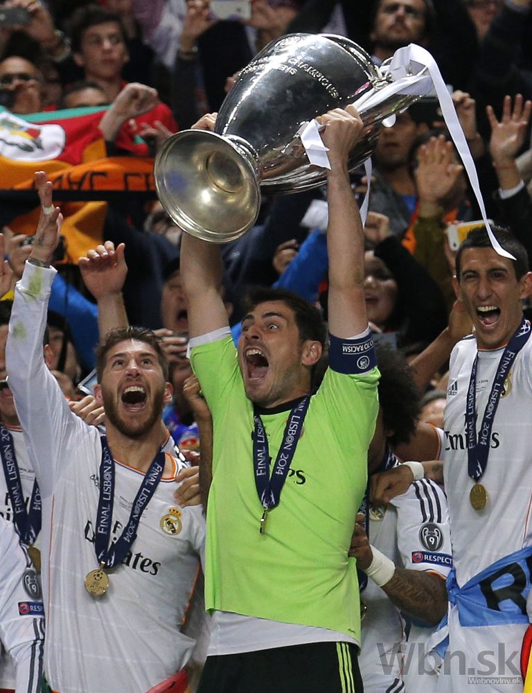 Radosť brankára Ikera Casillasa po treťom góle Realu, ktorý strelil Atléticu Marcelo počas predĺženia vo finálovom zápase Ligy majstrov. Foto: SITA/AP