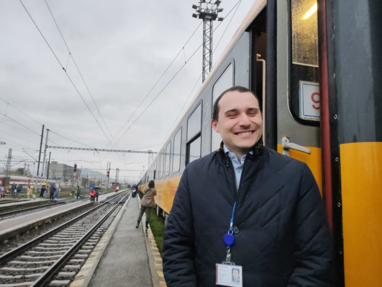 Vlak Regiojet na Železničnej stanici Košice počas spustenia prvého priameho železničného komerčného spojenia mezi EÚ a Ukrajinou na trase Praha, Košice, Čop. Košice, 28. marec 2024. Foto: SITA/Katarína Lörincová.