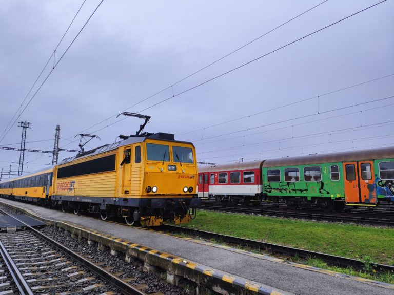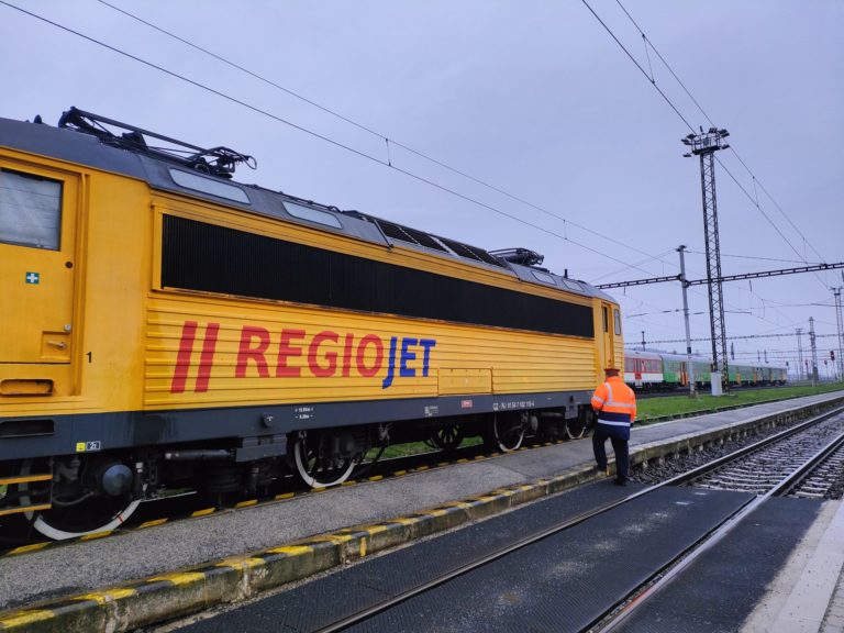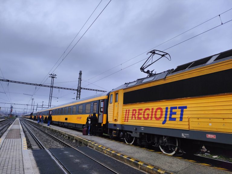 Vlak Regiojet na Železničnej stanici Košice počas spustenia prvého priameho železničného komerčného spojenia mezi EÚ a Ukrajinou na trase Praha, Košice, Čop. Košice, 28. marec 2024. Foto: ilustračné, SITA/Katarína Lörincová.
