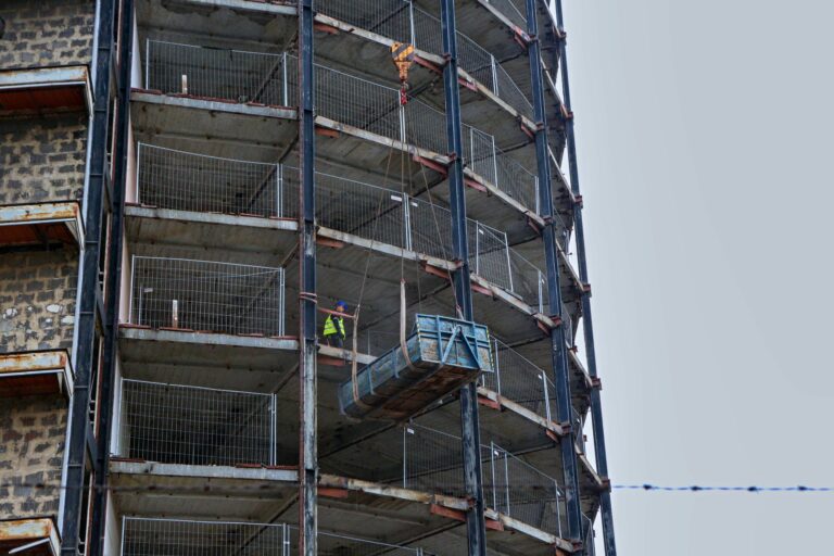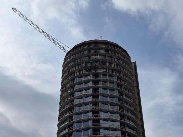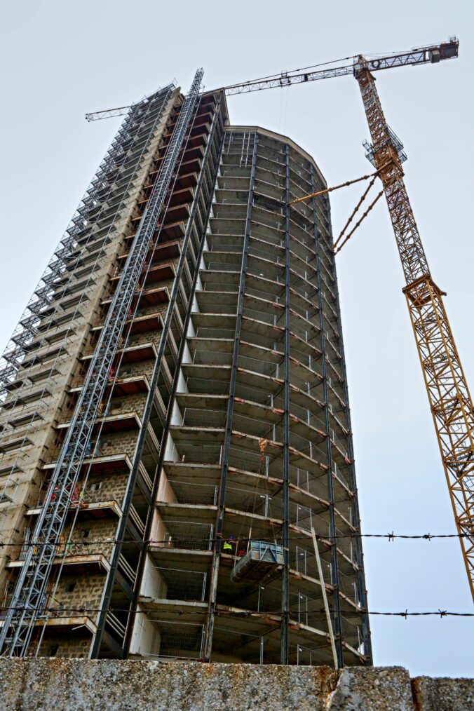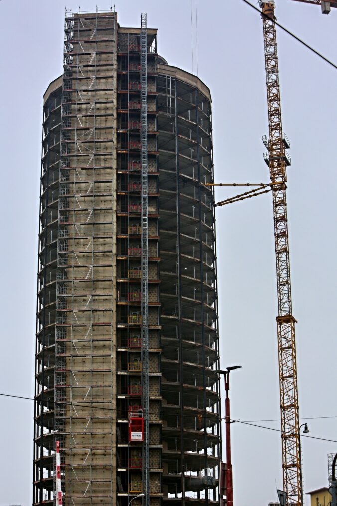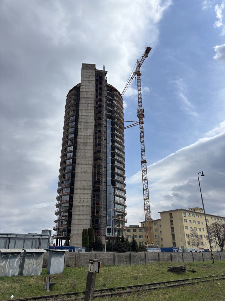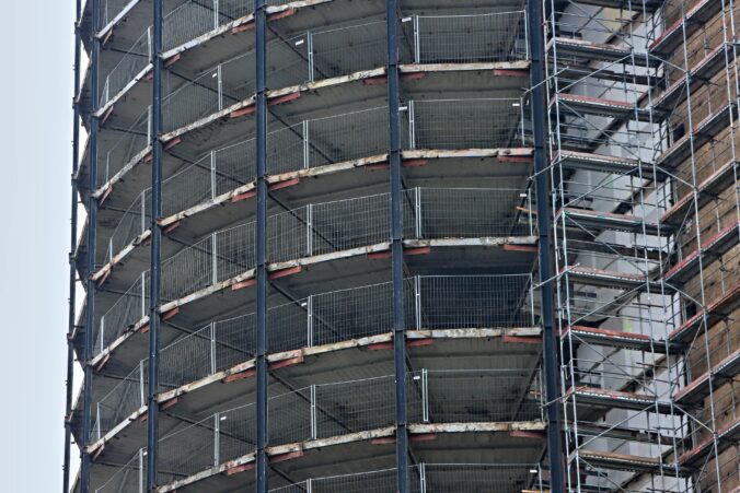 Stavebné práce počas rekonštrukcie bývalého Vojenského internátu Hviezda známeho ako Kukurica v Bratislave. Bratislava, 30. marec 2025. Foto: SITA/Michal Januš