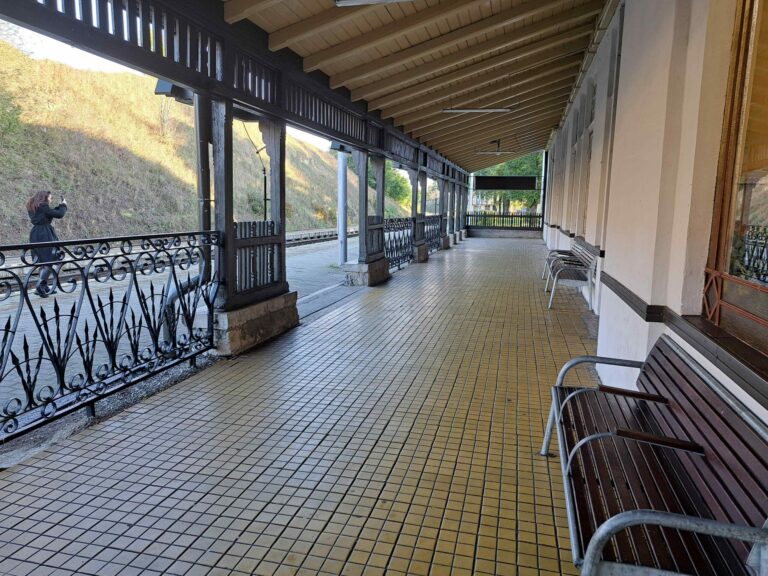 Nástupište pri budove železničnej stanice v Kežmarku, národnej kultúrnej pamiatky, pred začiatkom jej rekonštrukcie financovanej Železnicami Slovenskej republiky. Kežmarok, 7. október 2024. Foto: archívne, SITA/Mária Frisová