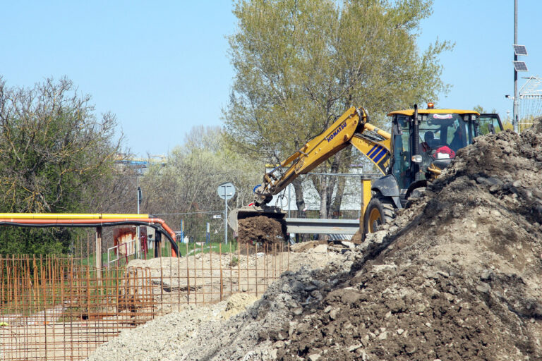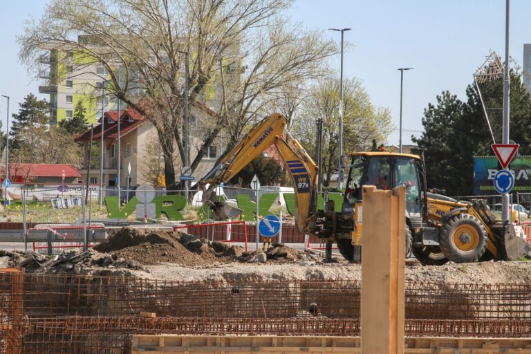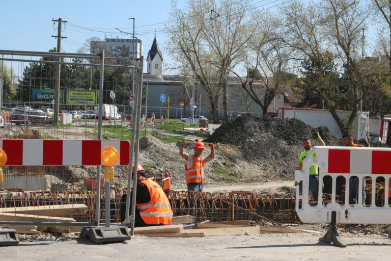 Stavebné práce na stavenisku počas rekonštrukcie mosta na Hradskej ulici cez Malý Dunaj vo Vrakuni. Bratislava, 4. apríl 2025. Foto: SITA