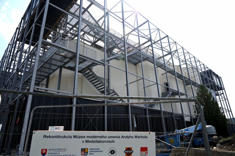 Pohľad stavbu počas kontrolného dňa k prebiehajúcej investičnej akcii PSK na rekonštrukcii Múzea moderného umenia Andyho Warhola v Medzilaborciach. Medzilaborce, 19. august 2024. Foto: SITA/Viktor Zamborský