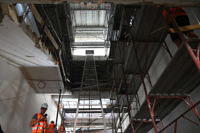 Pohľad na stavbu počas kontrolného dňa k prebiehajúcej investičnej akcii PSK na rekonštrukcii Múzea moderného umenia Andyho Warhola v Medzilaborciach.“Medzilaborce, 19. august 2024. Foto: SITA/Viktor Zamborský