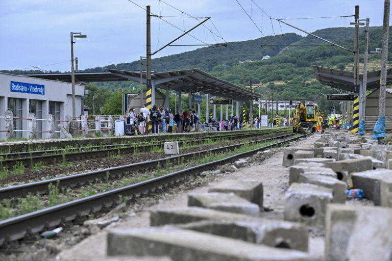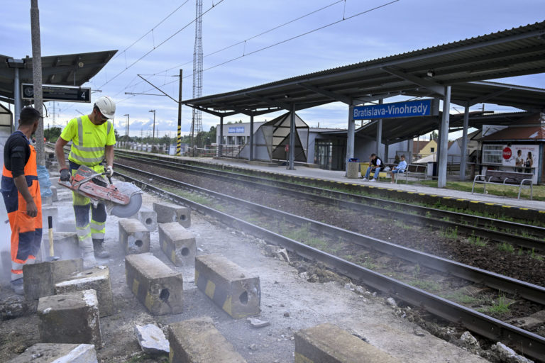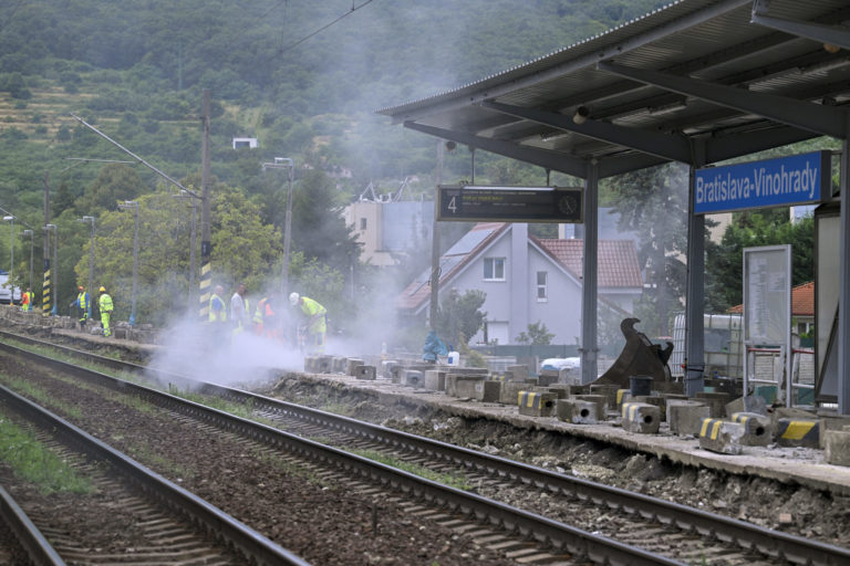 Rekonštrukcia nástupíšť č. 3 a č. 4 v stanici Bratislava-Vinohrady a železničnej trate medzi stanicami Bratislava-Vinohrady a Bratislava hl. st., ktoré realizuje manažér železničnej infraštruktúry Železnice Slovenskej republiky (ŽSR). Bratislava 3. august 2023. Foto: archívne, SITA/Milan Illík