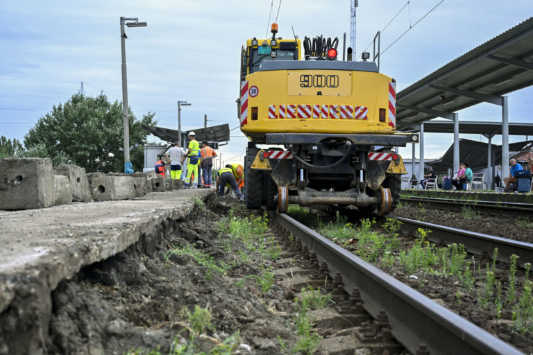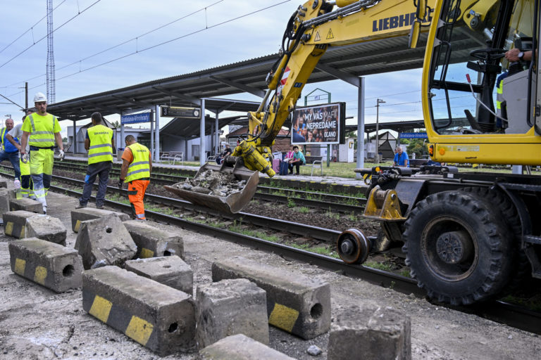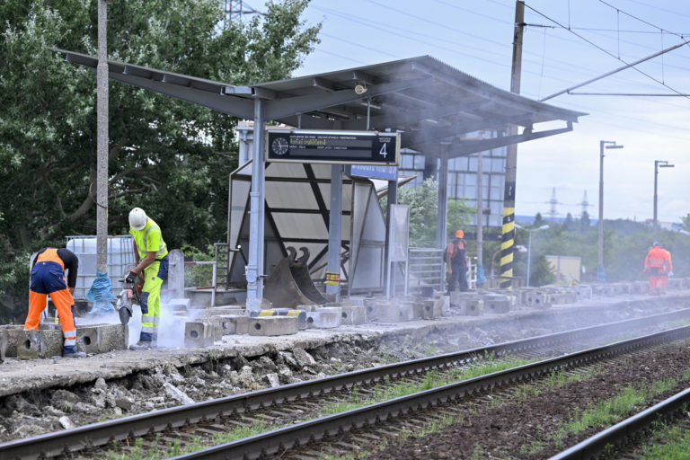 Rekonštrukcia nástupíšť č. 3 a č. 4 v stanici Bratislava-Vinohrady a železničnej trate medzi stanicami Bratislava-Vinohrady a Bratislava hl. st., ktoré realizuje manažér železničnej infraštruktúry Železnice Slovenskej republiky (ŽSR). Bratislava 3. august 2023. Foto: SITA/Milan Illík
