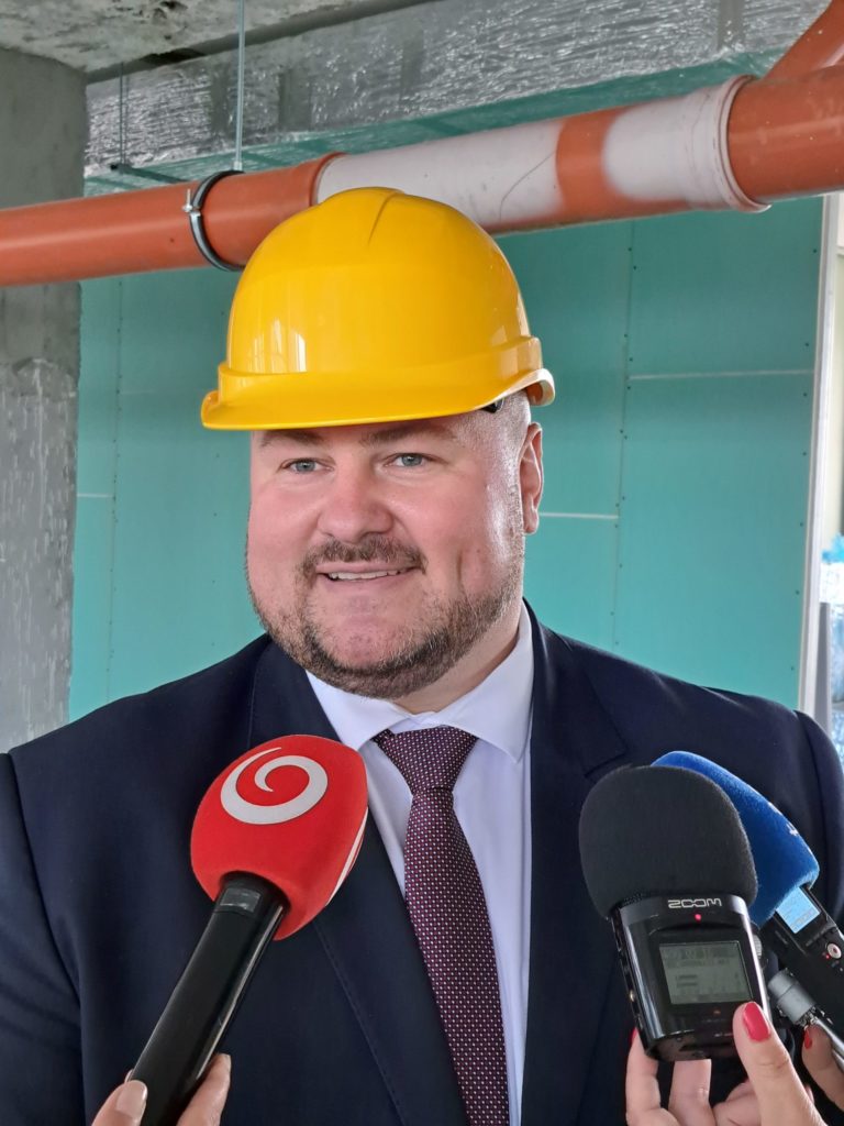 Riaditeľ nemocnice v Poprade Stanislav Kandrik odpovedá na otázky novinárom počas prehliadky na stavenisku v rámci projektu Komplexná obnova a prestavba Nemocnice Poprad, na ktorý získala nemocnica 40 miliónov eur z Plánu obnovy a odolnosti. Poprad, 18. júl 2024. Foto: SITA/Mária Frisová