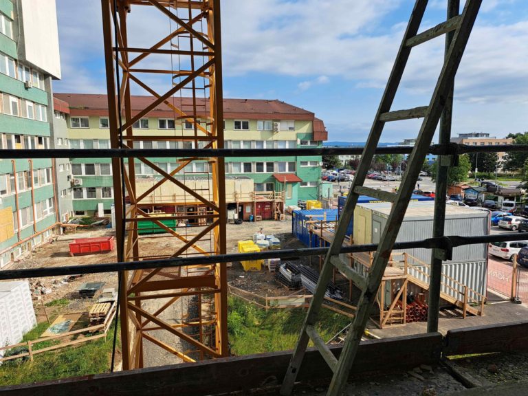 Stavebné práce v popradskej nemocnici v rámci projektu Komplexná obnova a prestavba Nemocnice Poprad, na ktorý získala 40 miliónov eur z Plánu obnovy a odolnosti. Poprad, 18. júl 2024. Foto: SITA/Mária Frisová