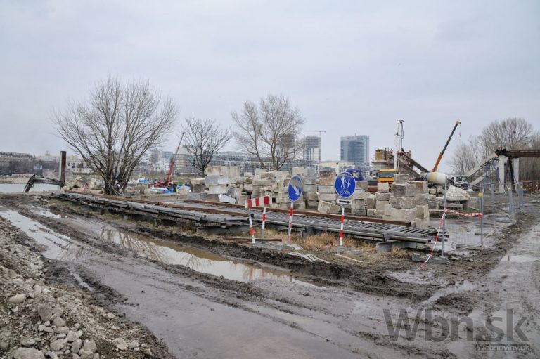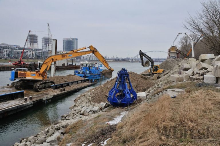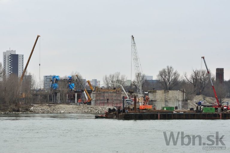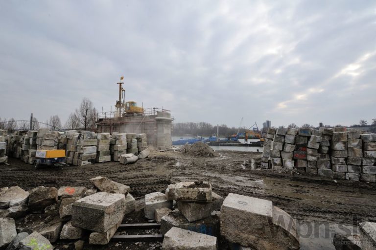 Práce na prestavbe Starého mosta a budovaní prvej časti električkovej trate do Petržalky. Nový pilier nahradí zbúraný tretí a štvrtý pilier. Zároveň robotníci pokračujú na zosilňovaní piateho piliera, ktorý je dôležitý pre následné vysúvanie mostovej konštrukcie. Bratislava, 17. február 2015.