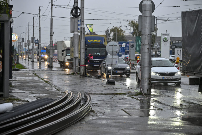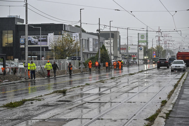 Rekonštrukcia Vajnorskej radiály a dopravné obmedzenia na ceste v úseku, ktorý spája Trnavské mýto so Zlatými pieskami. Bratislava, 27. október 2023. Foto: SITA/Milan Illík