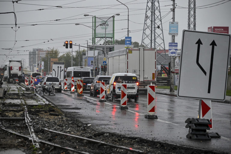 Rekonštrukcia Vajnorskej radiály a dopravné obmedzenia na ceste v úseku, ktorý spája Trnavské mýto so Zlatými pieskami v Bratislave. Bratislava, 27. október 2023. Foto: SITA/Milan Illík