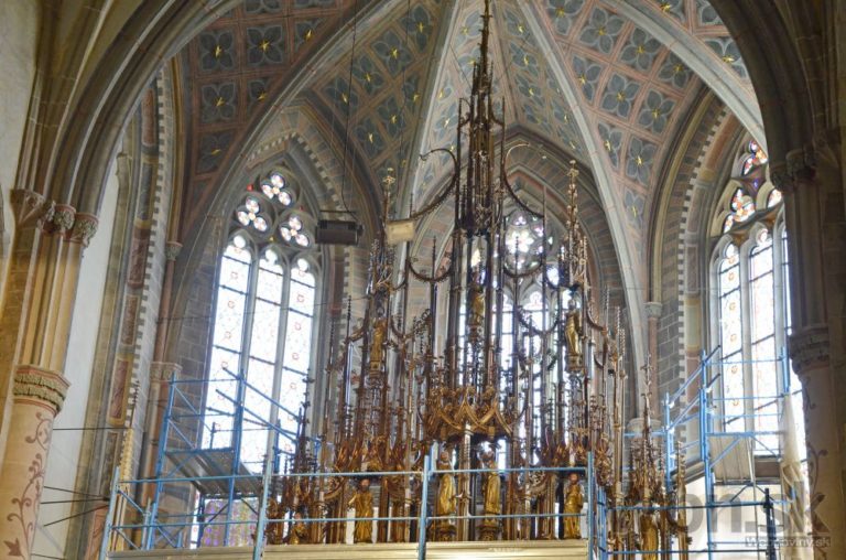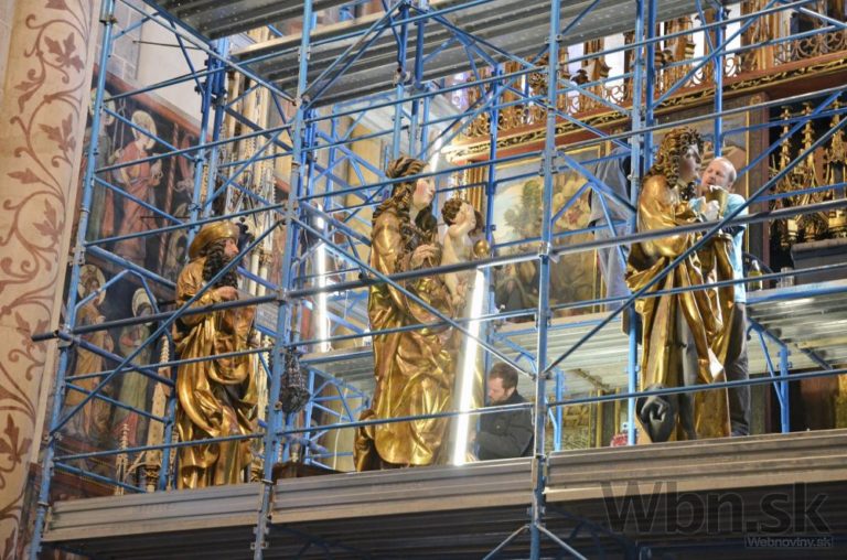 Najvyšší gotický oltár na svete v Chráme sv. Jakuba počas tlačovej besedy Oblastného reštaurátorského ateliéru v Levoči k reštaurovaniu oltára. Levoča, 22. máj 2014. Foto: SITA/Radoslav Maťaš