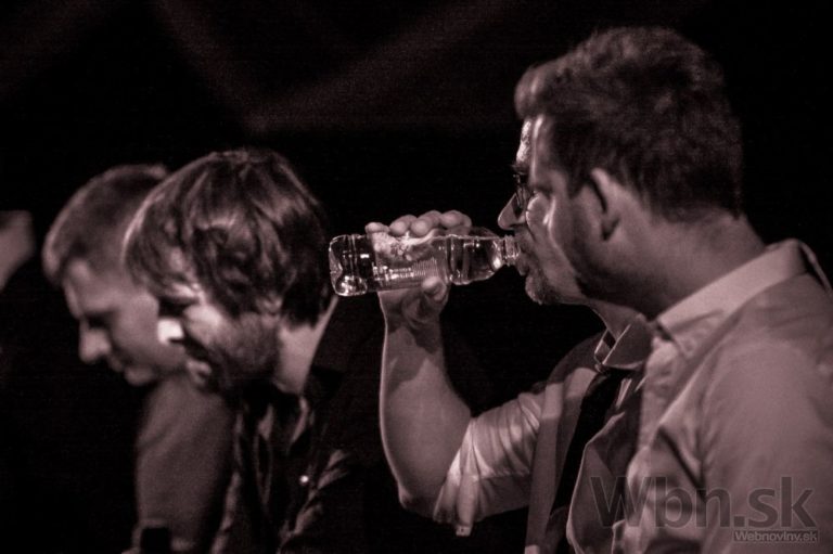 Richard Müller a skupina Fragile odštartovali v Trenčíne turné Hlasy 2. Interpreti počas večera predviedli bez použitia jediného hudobného nástroja upravené verzie skladieb ako Po schodoch, Nahý 2, Tlaková níž, Milovanie v daždi či Štěstí je krásná věc. Foto: Pavol Karell