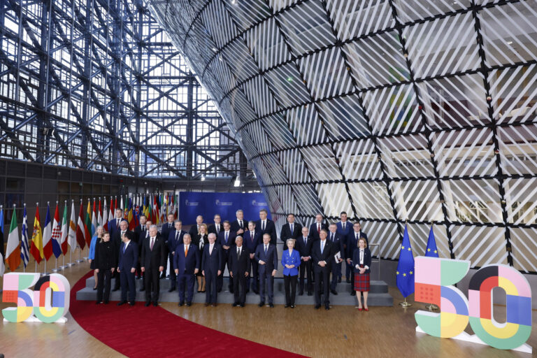 Lídri Európskej únie pózujú na skupinovej fotografii pri oslave 50. výročia Európskej rady na samite EÚ v Bruseli vo štvrtok 19. decembra 2024. Foto: SITA/AP
