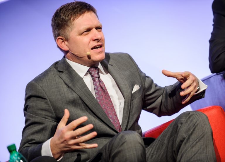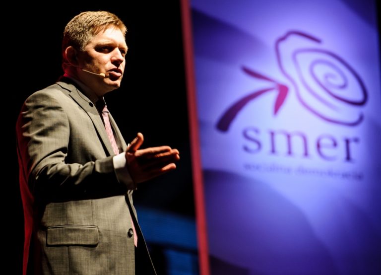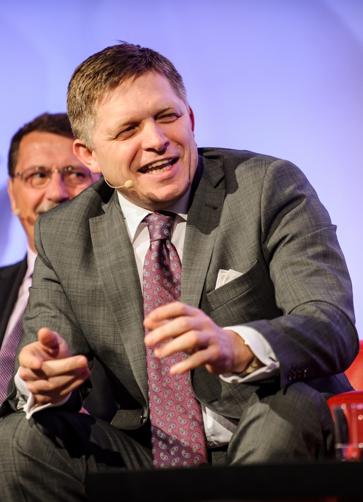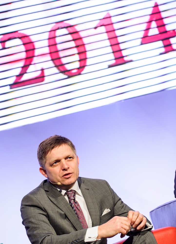 Predseda strany Smer-SD Robert Fico počas podujatia pri príležitosti osláv MDŽ v Nitre za účasti predstaviteľov vládnej strany. Nitra, 5. marec 2014. Foto: SITA/Martin Havran
